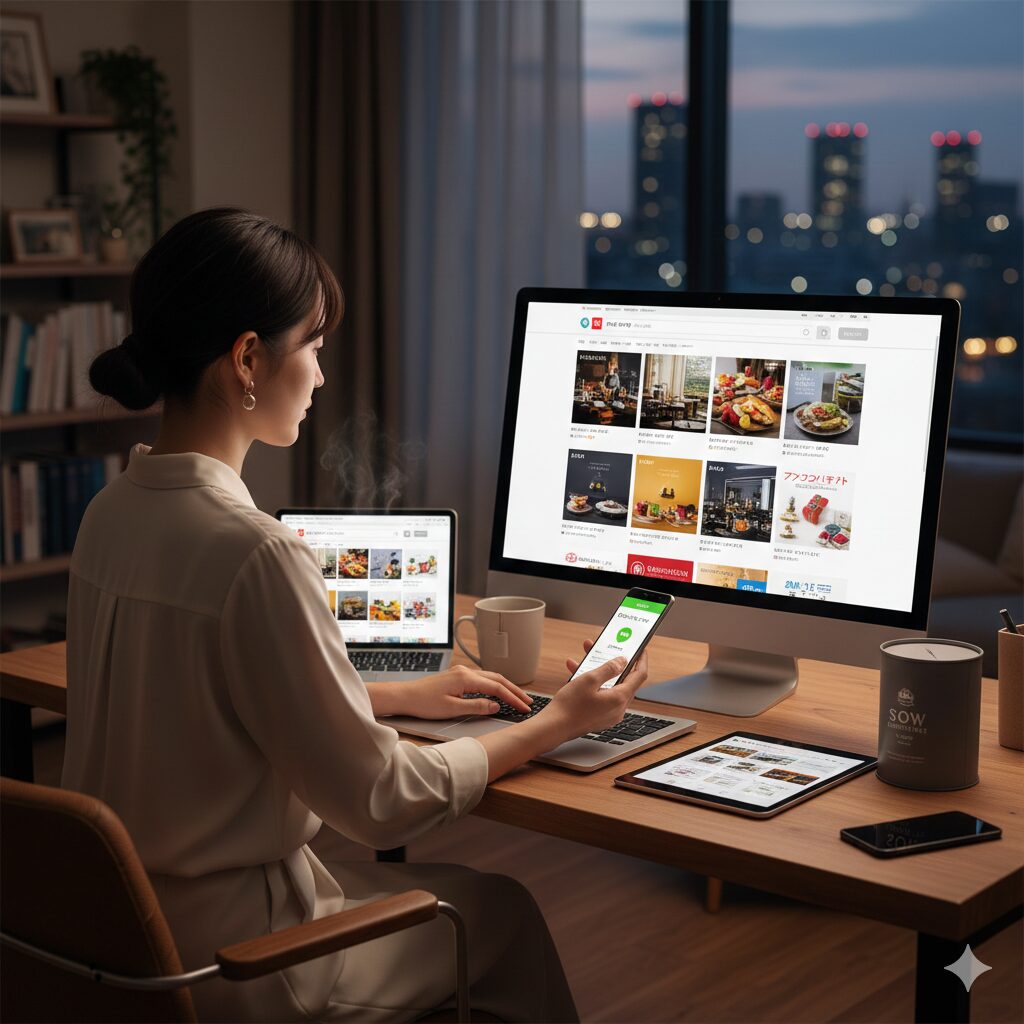 時間に余裕があるなら、Amazon、楽天市場、Yahoo!ショッピング、または各公式サイトなどのネット通販が最も選択肢が広く、比較検討しやすいチャネルです。特に「アソビュー!ギフト」や「リンベル」、「ハーモニック」などのサイトでは、ホテルディナーやアフタヌーンティーなど、特定の豪華なプランがセットになったチケットをじっくり選べます。