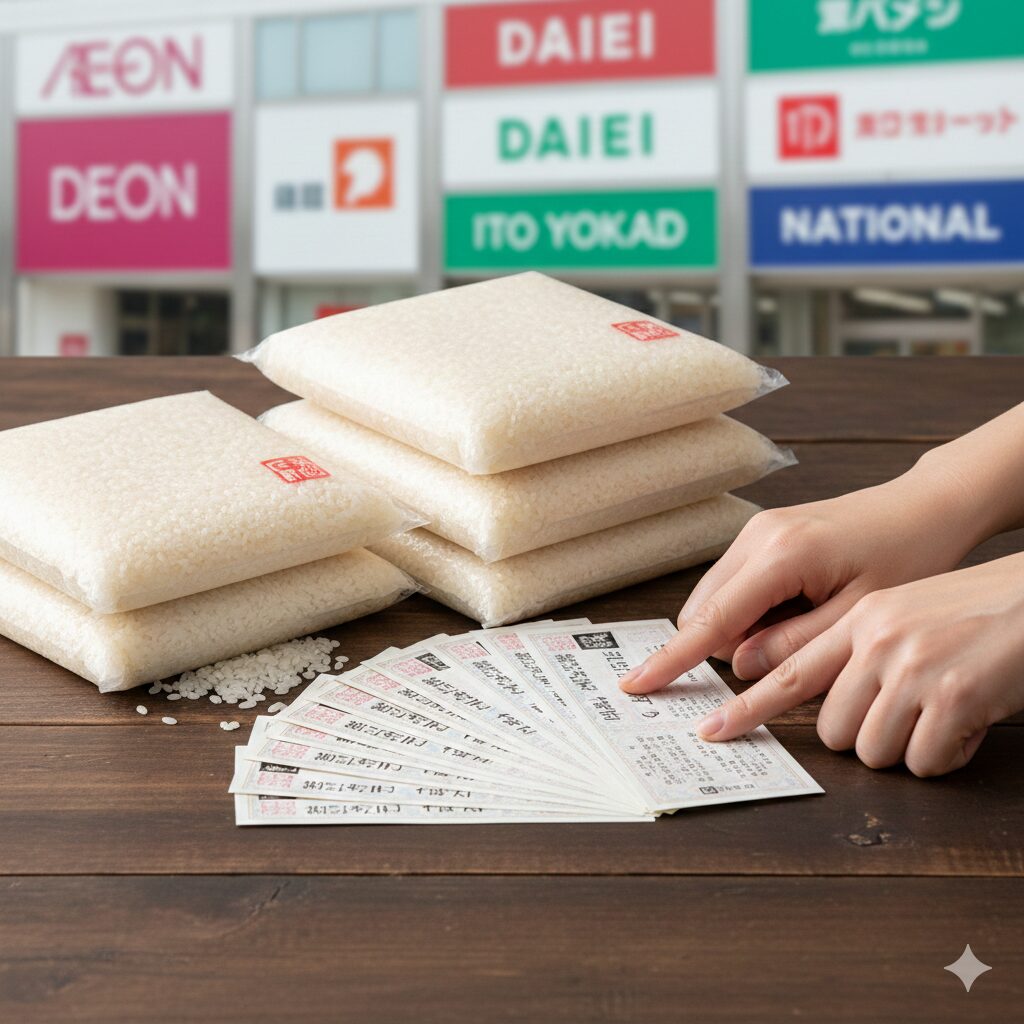 実は今、お米券はスーパーだけでなく、ドン・キホーテやドラッグストア、コンビニなど、私たちの生活に身近な多くのお店で使えるようになっているんです。しかも、中には「お釣りが出る」という神対応のお店まで存在します。