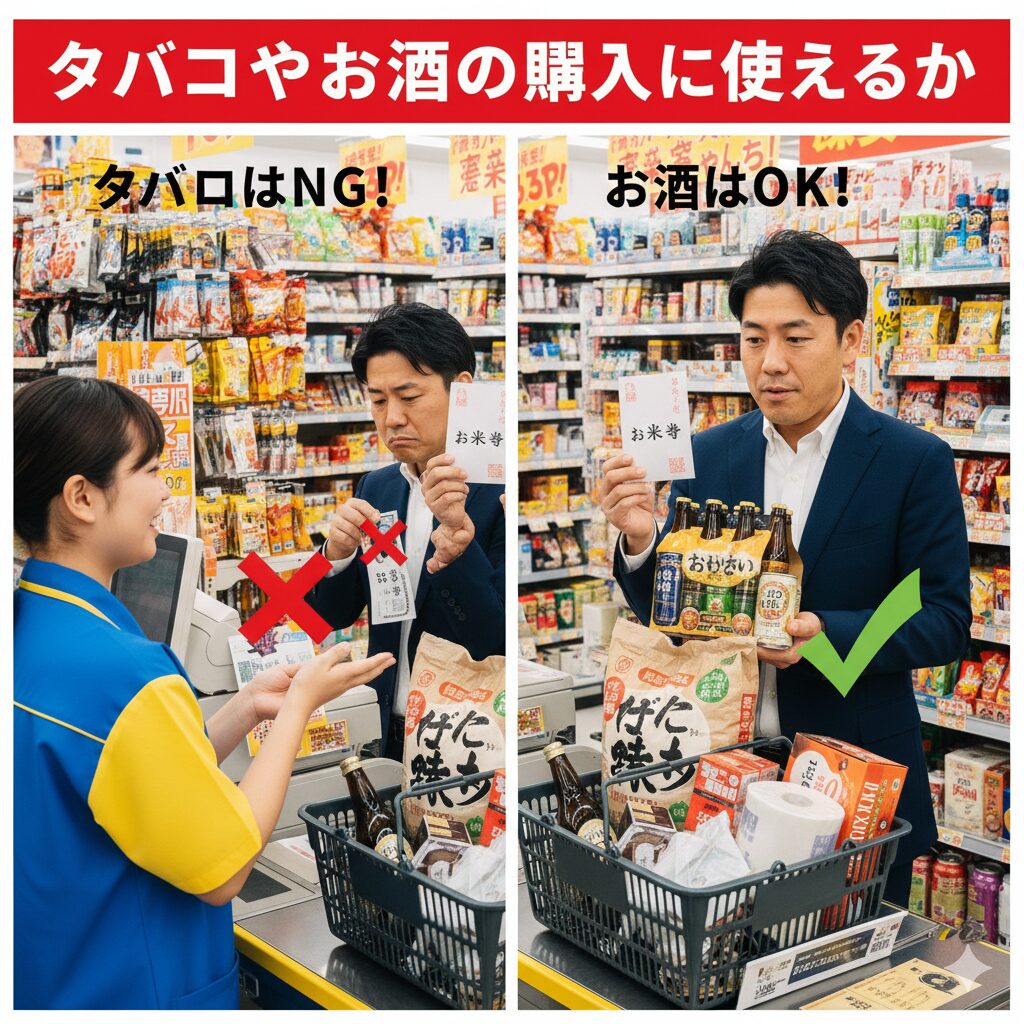 ただ、ここでもドン・キホーテのような「会計総額から値引く」というPOSシステムを採用している店舗では、他の商品と一緒に買うことで、結果的にタバコ代の一部にお米券の価値が充当できてしまうというグレーゾーンも存在します。