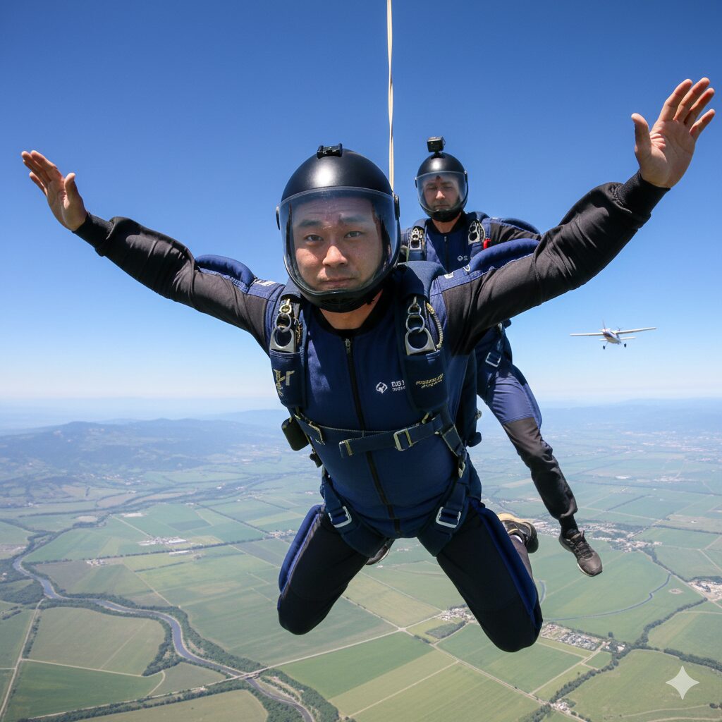- プロフェッショナルによる操作:数千回のジャンプ経験を持つベテランインストラクターが、姿勢制御からパラシュート開傘、着地まで全てをコントロールします。
