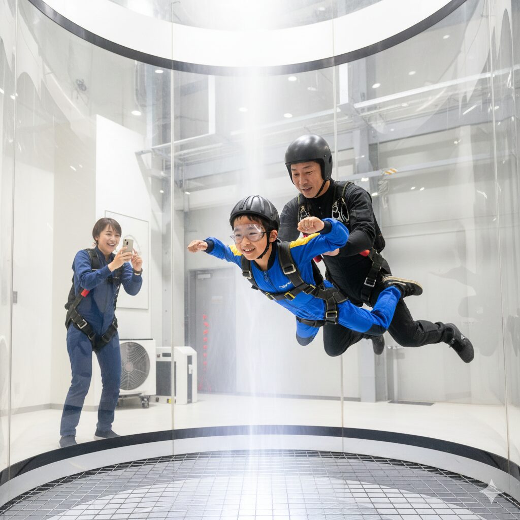 実際のスカイダイビングの約10分の1の価格で、フリーフォール特有の「風に乗る感覚」を体験できるのは革命的です。また、4歳のお子様から参加できるため、家族みんなで楽しむアクティビティとしても最適です。まずはここで「風に乗る」感覚を掴んでから、本物の空へ挑戦するというステップアップもおすすめですよ。