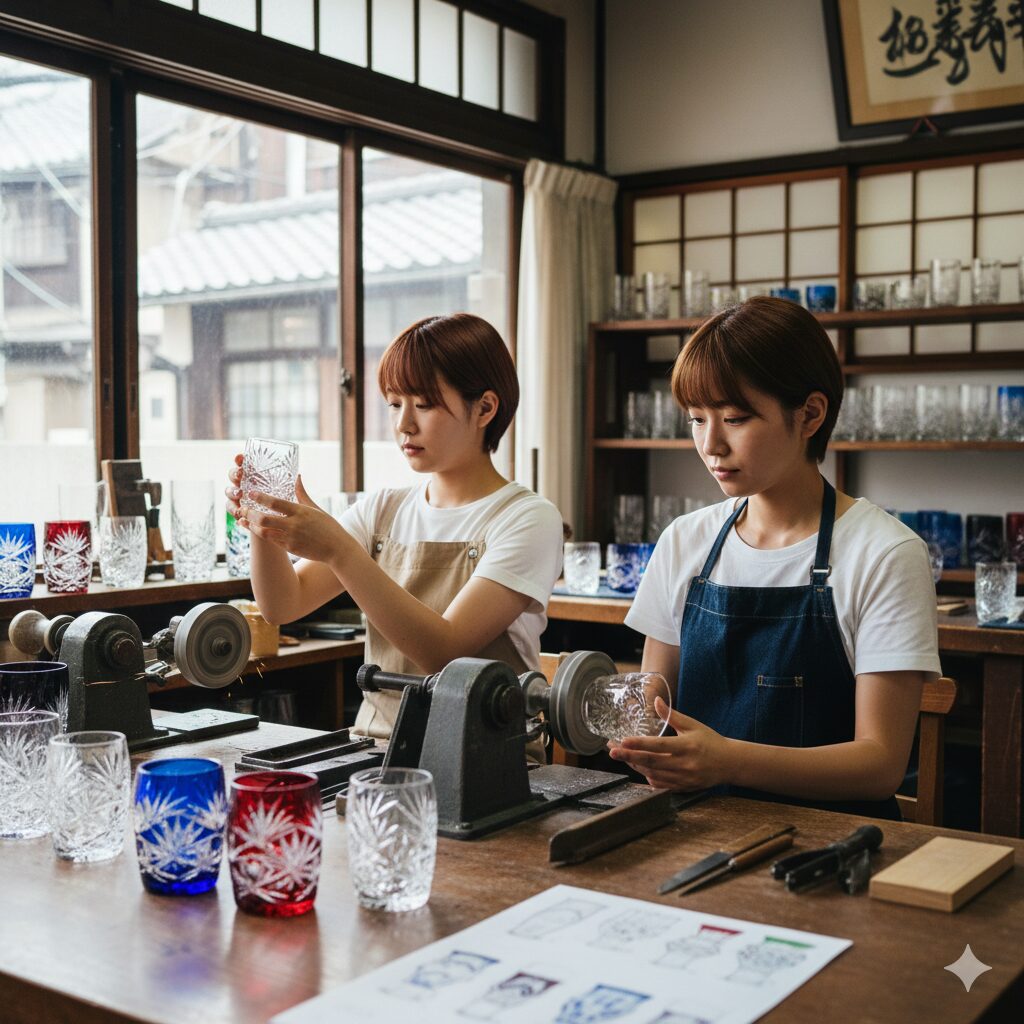 また、東京の下町エリアならではの体験として外せないのが「江戸切子」です。浅草の「創吉」などでは、伝統工芸士の指導のもと、回転するダイヤモンドホイールにガラスを押し当てて模様を刻む体験ができます。繊細な幾何学模様を彫り込む作業は緊張感がありますが、光にかざした時の宝石のような輝きを見た瞬間、すべての疲れが吹き飛びます。自分で作った切子グラスで飲むビールやジュースは、格別の味になること間違いありません。