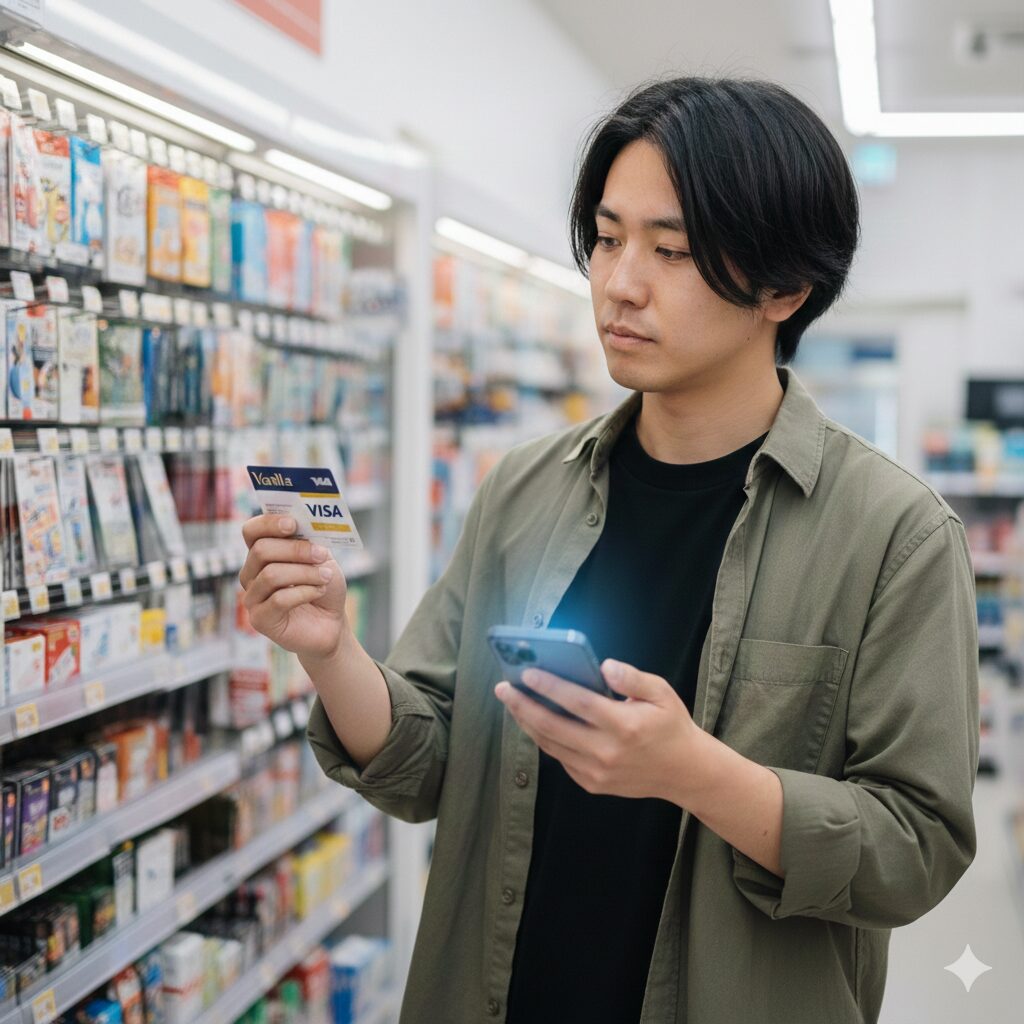 以前はセブン-イレブンでバニラVisaが買えないことがネックでしたが、2025年頃から取り扱い店舗が急拡大しており、今はほぼ死角がありません。一方で、ローソンではバニラVisaを見かけることが非常に少ないため、ローソンに行くなら「Vプリカ」を買うつもりで行くのが正解です。